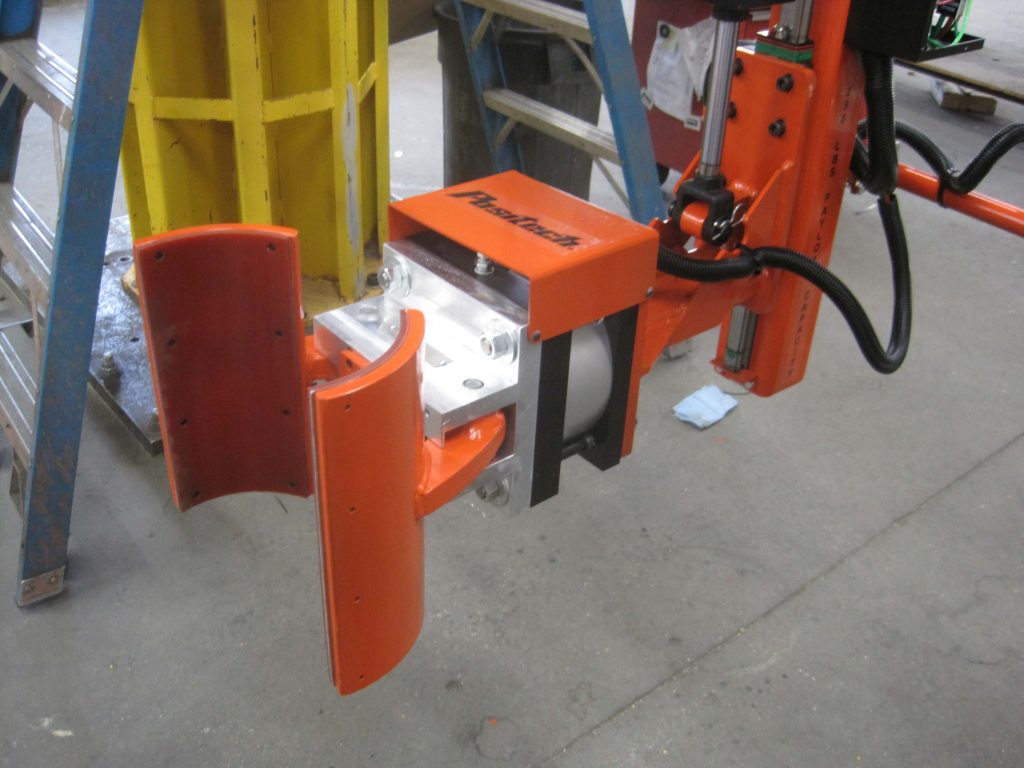 Positech has designed a manipulator which will engage a shroud weighing up to 250 lbs from the shipping container, raise it a few inches, and then move the shroud to the shroud exchanger.