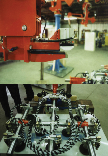 Handling various sizes of materials including tubing, channel, steel plates and formed sheet metal with only one manipulator.