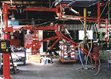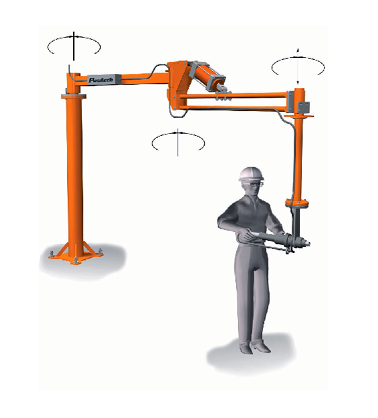 Positech’s pneumatic ReactionArm® (RA), a torque reaction arm, absorbs shock, torsional forces and impact force from power tools; therefore, reducing carpal tunnel injury and cumulative trauma disorders. This reaction arm moves up and down without pushing any buttons with very little effort and prevents any force of the power tool through the workers’ wrists, arms and upper bodies by absorbing the shock of the attached power tool. A power tool mounted on a Reaction arm can easily be moved and positioned throughout the work cell. A variety of styles, capacities and mounting options provide versatility.