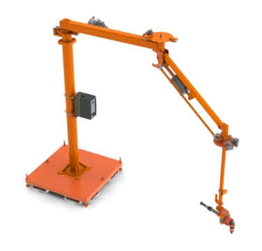 • Main post adjustable friction brake allows the operator to set arm motion for ease of operation