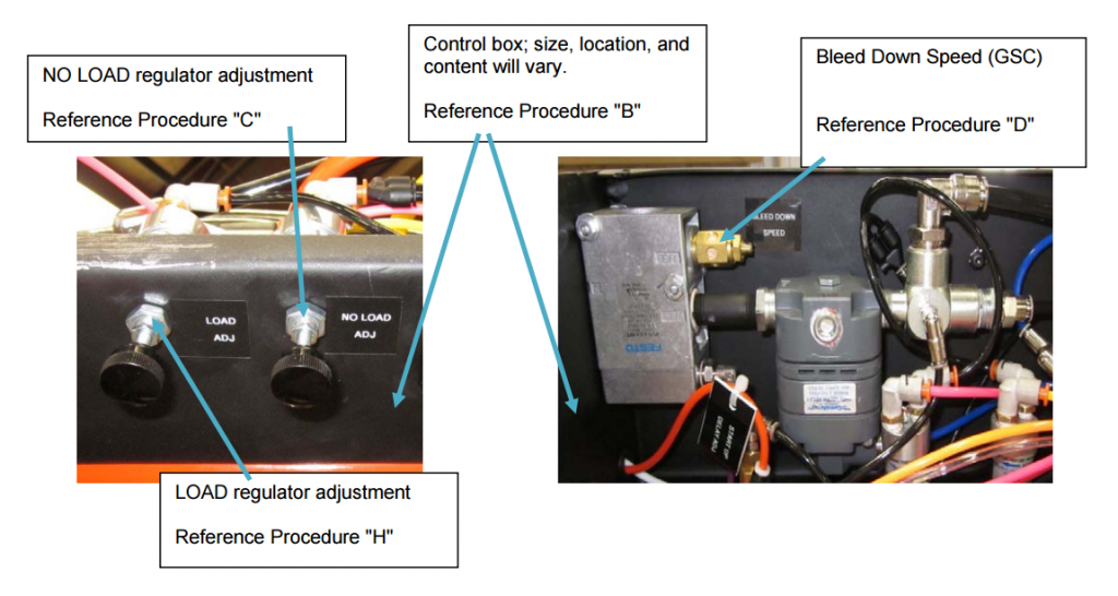 - Set the NO LOAD balance regulator to properly support the arm and empty tooling. Any time the no load regulator is changed or adjusted, the GSC valve needs to be reset as well.