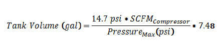 Tank Sizing: As a general rule - the larger the tank, the better the system. A good rule of thumb is enough capacity for 1 minute of compressor capacity.