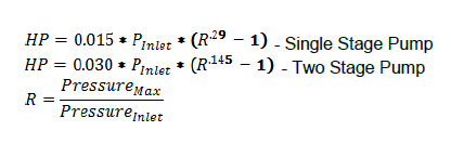- For 100 psi system requirements: Divide the total SCFM by 4 to get horsepower required for a single stage pump; divide the total SCFM by 5 to get horsepower required for a two stage pump