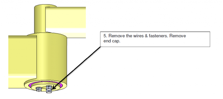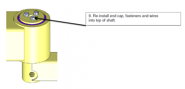 - Re-install end cap, Hex Head bolts, and wires into top of shaft.