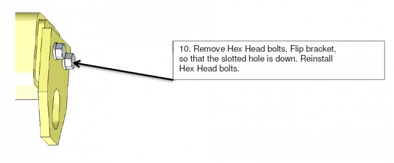 - Remove Hex Head bolts, flip bracket, so that the slotted hole is down. Reinstall Hex Head bolts.