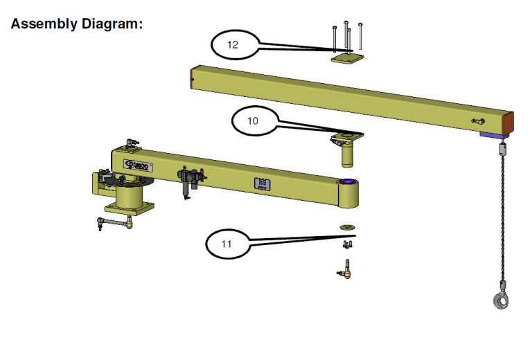 Design: Positech articulated jibs are designed wtih a 5:1 factor of safety to the ultimate strength of the material. The maximum allowable deflection in the jib is 1/8 degree per axis or 1/4 degree total.